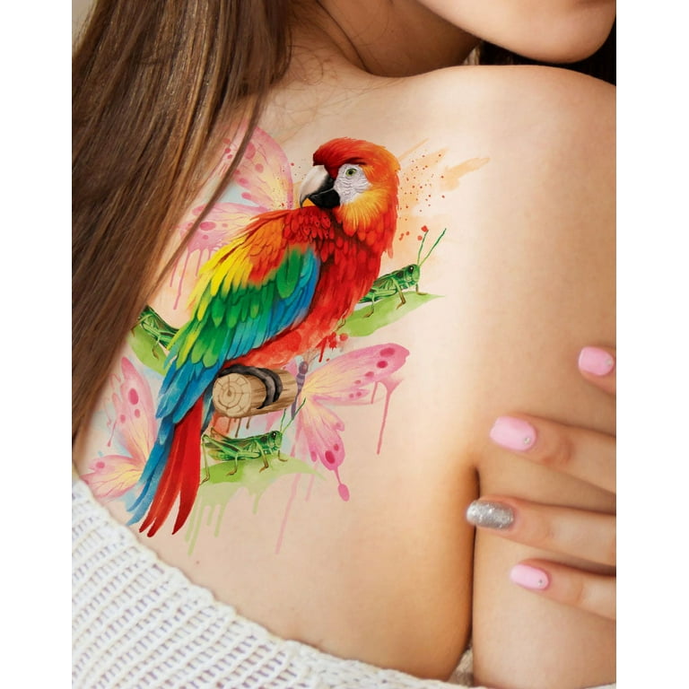 Wirester Temporary Tattoos For Women Girls Boys Kids Waterproof Fake Tattoos On Face Hand Neck Wrist Arm Shoulder Chest Back Legs Macau Bird Grasshopper Butterflies Walmart Com